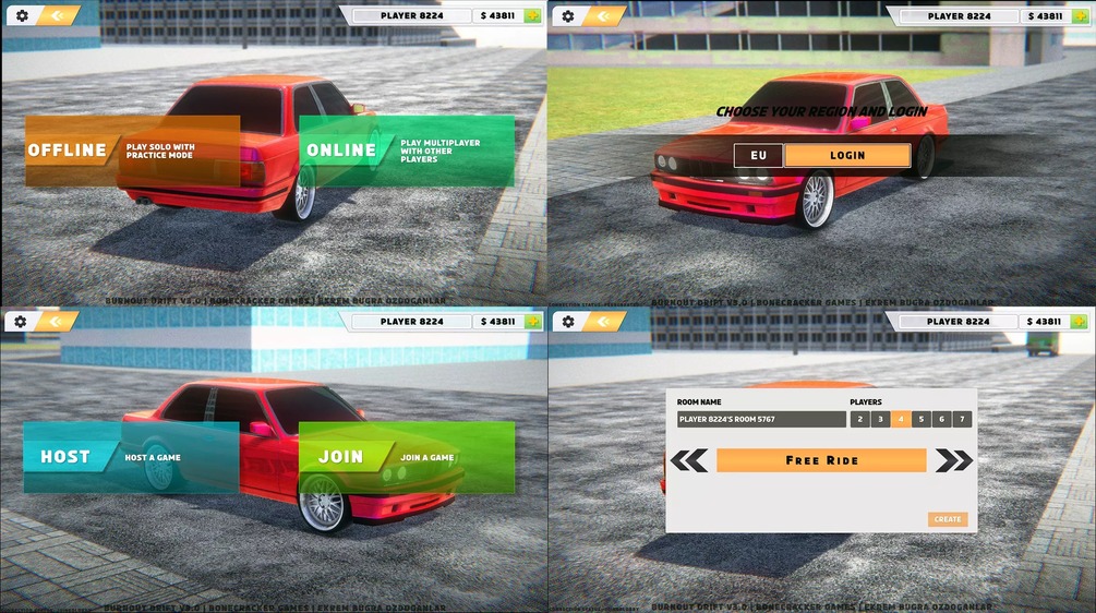 Burnout Drift Multiplayer is a complete project that has been used in Burnout Drift series published on PC, Android, iOS, and WebGL.