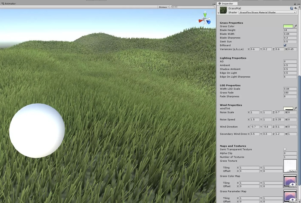 Example scenes are provided that show how to set up and interface with GrassFlow. Even comes with a cute little hand painted house model, bonus!