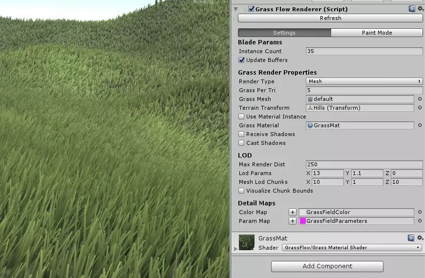 Example scenes are provided that show how to set up and interface with GrassFlow. Even comes with a cute little hand painted house model, bonus!